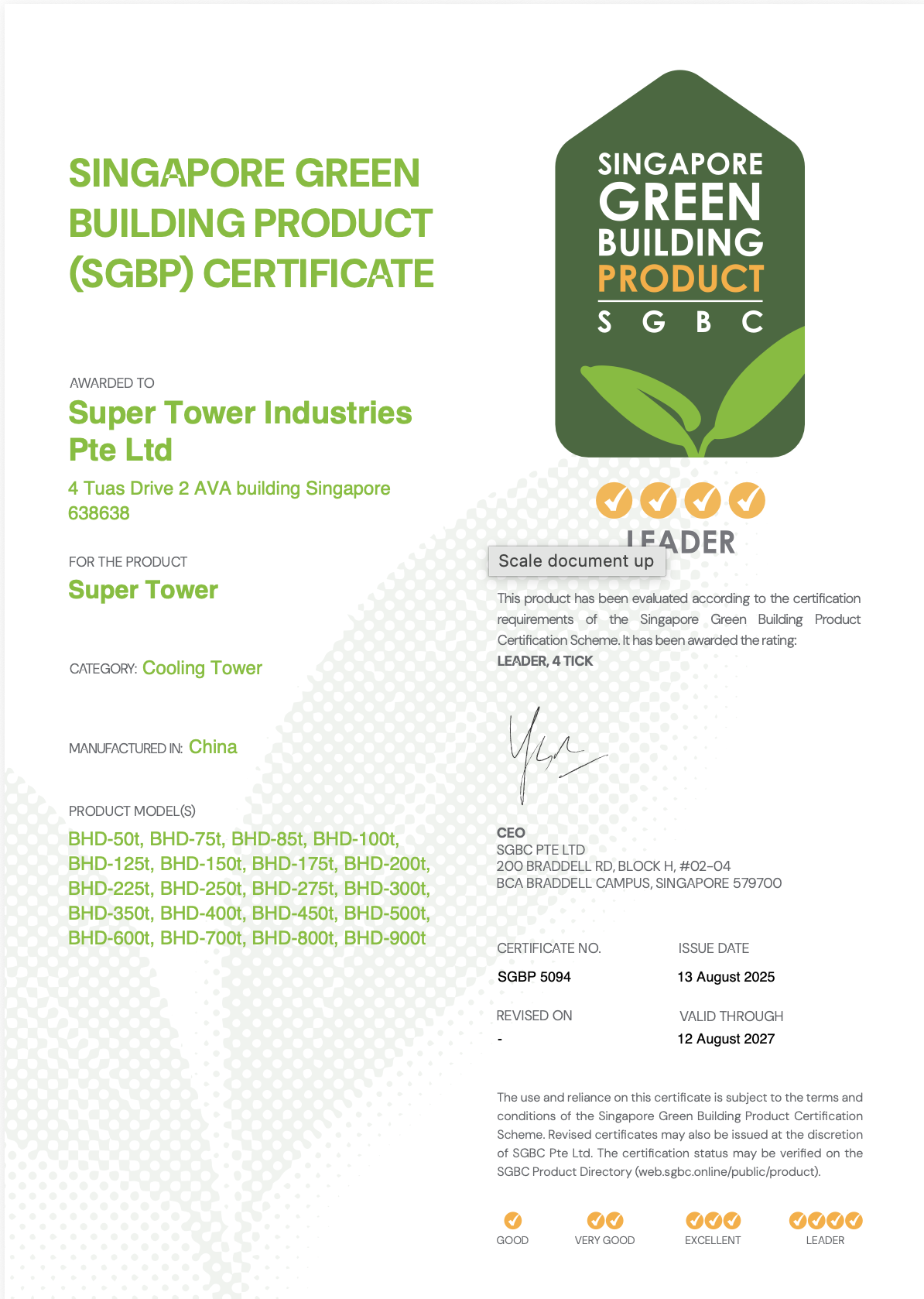 With over 20 years in the industry, Roy Tay brings extensive expertise in ACMV, cooling towers, energy management systems, and water tank solutions. This wealth of experience enables him to drive innovation and lead Super Tower Industries Pte Ltd towards achieving its strategic goals and fostering sustainable growth.